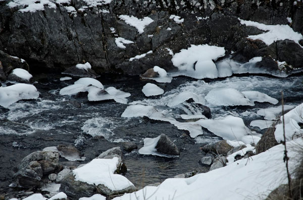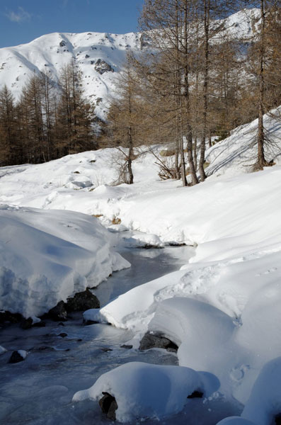 Elle est effectivement traversée par un ruisseau que j’ai pu franchir sur un pont de neige.