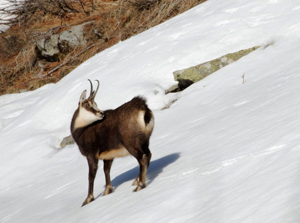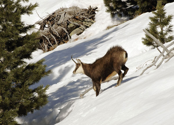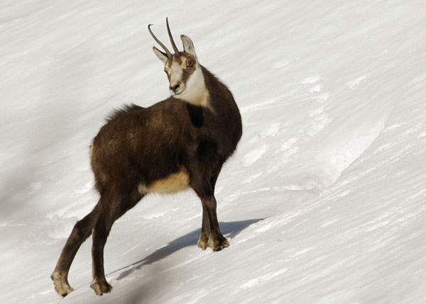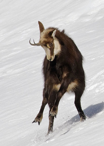 Ici, un seul chamois, dans une position qui nous semble inutilement acrobatique.