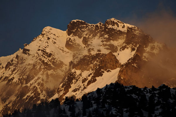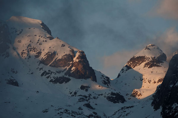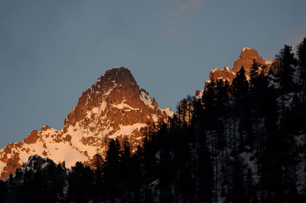 Les plus hauts sommets (Grand Capelet, Cime du Diable), s’illuminent une dernière fois.