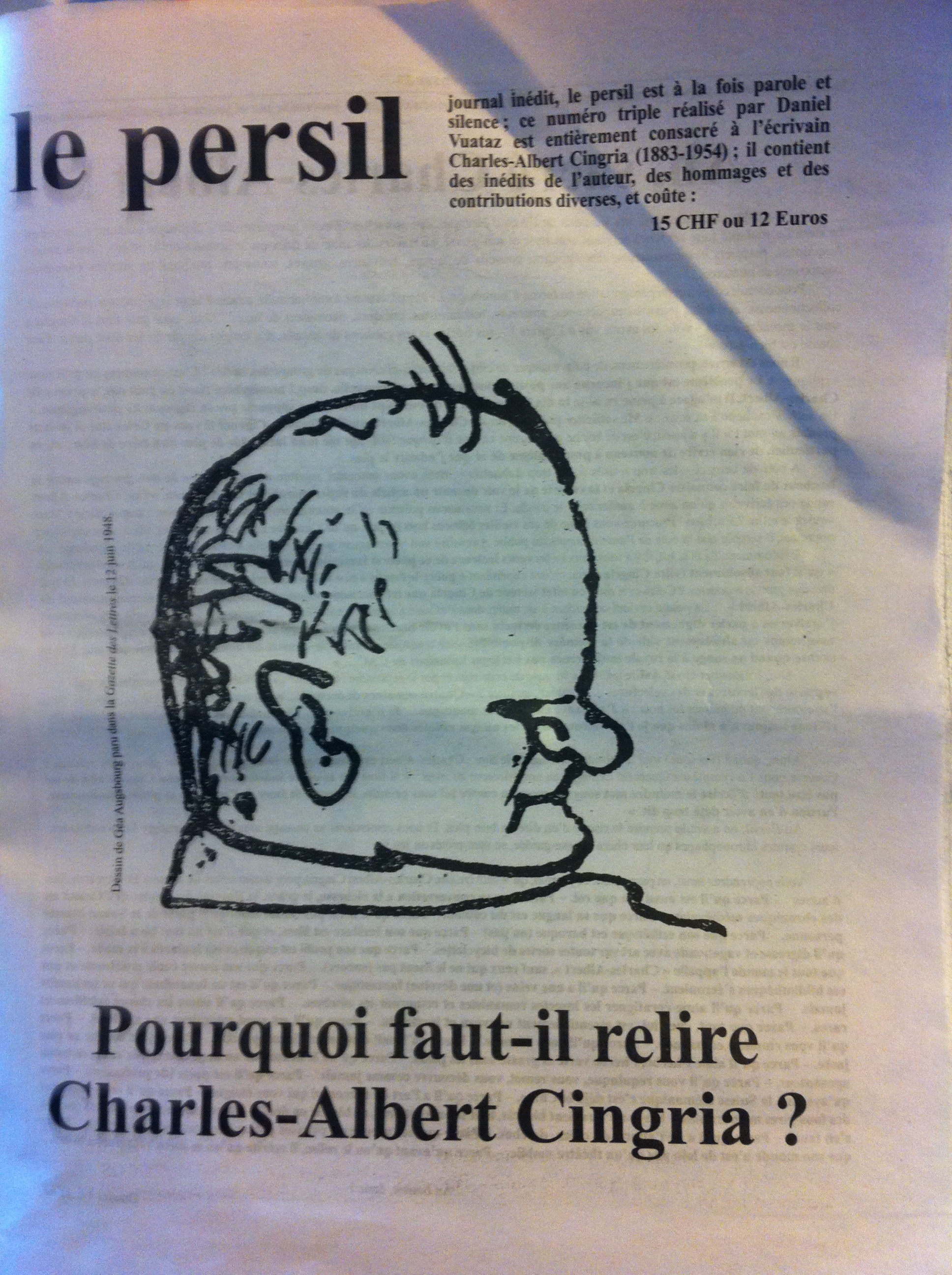 Vous ne connaissez pas Charles-Albert mort en 1954. il nous a laissé un trésor d’histoires vécues avec le coeur. Lisez vite “Bois sec bois vert” publié dans l’Imaginaire et lisez le Persil domicilié Avenue de Floréal 16, 1008 Prilly, Suisse et qui vaut 12 euros pour ce gastronomique numéro spécial. Vous pourrez aussi le retrouver sur Internet. Si vous entrez dans Cingria l’année 2012 sera une merveille quoi qu’il advienne de la finance internationale.