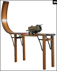 Bois fruitier, émail, fonte, cuivre et locomotive de tôle.