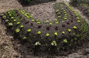 Il faut toutefois veiller à ne pas trop mélanger les plantes sur une même butte, 4 semble être un maximum, car trop de complexité augmente le temps de récolte et peut rendre le système ingérable dans une perspective professionnelle. La polyculture est réalisée à l’échelle du jardin, de butte en butte, ce qui impose de garder une trace écrite des successions de cultures pour une bonne gestion des rotations.