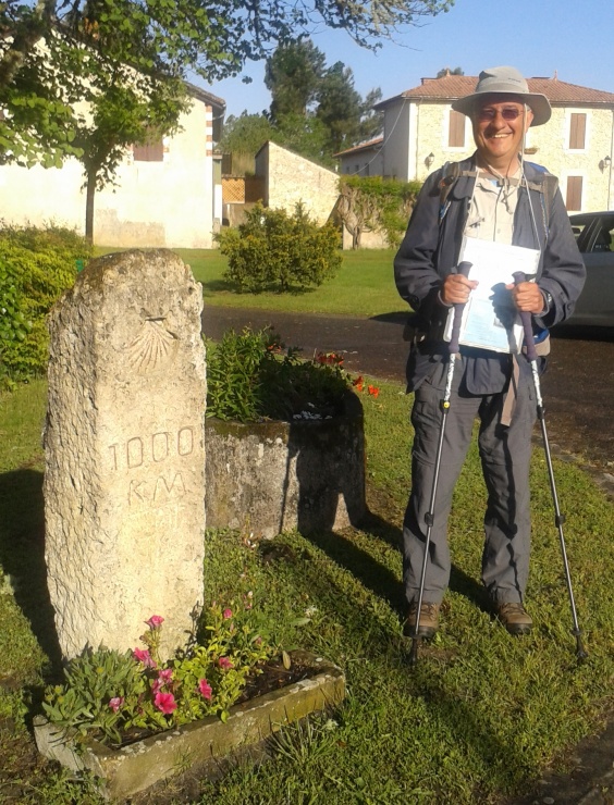 Ce n’est qu’au début du siècle, devenu quinquagénaire, que retrouvant le livre dans ma bibliothèque, je décidais d’aller plus avant. Ma première démarche fut d’aller à la permanence de la rue des Cannettes voir l’association des Amis de Saint Jacques pour me renseigner. J’adhérais à l’association et la personne qui me reçut me remis ma crédentiale. Elle me dit qu’avec le prochain Bulletin de l’association je recevrai une fiche d’un certain Francis Delort qui organisait des marches sur les chemins de Saint Jacques autour de Paris. Et comme par hasard, lorsque je reçus cette fiche, la marche que Francis proposait cette année-là, allait de Paris à Tours par Chartres. Et, probable signe du destin, elle passait dans mon village d’origine : Prunay-Cassereau. Il était évident que je devais faire cette marche. A l’époque je pensais faire le chemin dans les mois à venir. Mais je ne voyais pas comment abandonner mon entreprise pendant les 2 mois et demi nécessaires pour le faire en une seule fois et non par petites étapes.. Et je découvris très vite, en marchant avec le groupe de Francis Delort, que les plus âgés d’entre nous, qui étaient déjà à la retraite, marchaient mieux que ceux qui, comme moi, étaient encore en activité. Je décidais donc d’attendre d’être à la retraite pour faire le chemin dans son intégralité. Entre temps j’ai marché avec le groupe Francis Delort. Et pendant 10 ans, outre le Paris-Tours par Chartres, nous avons fait : Reims-Paris, Amiens-Paris, Paris-Vézelay, Paris-le Mont Saint Michel, Paris-Tours par Orléans, Rouen-Paris…