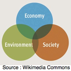 Les Sciences humaines et sociales (SHS), comme leur nom l’indique, ont peu de raisons de s’intéresser à l’écologie politique si celle-ci consiste simplement à adjoindre au champ politique des analyses et des propositions issues de l’étude de la nature. La représentation picturale du développement durable révèle cette image rassurante de l’écologie politique :