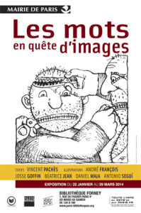 Exposition des illustrations des artistes André François, Béatrice Jean, Josse Goffin, Daniel Maja et Antonio Seguí sur les textes de Vincent Pachès.