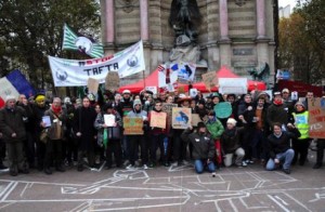 Première manifestation citoyenne Stop TAFTA à l’initiative du collectif citoyen les Engraineurs, Paris le 24 novembre 2013.” DR Reporterre