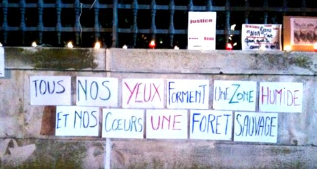 Nîmes pancartes rémiHommage à Rémi Fraisse affiché à Nîmes,