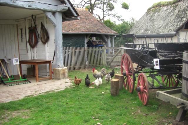 Les crêtes boisées qui limitent l’horizon des deux côtés semblent proches (Fig. 2), pourtant une vue aérienne nous montrera que la ferme est une oasis entourée de prés ou de champs pauvres et plats. Mon ami Alain me fait remarquer qu’une terre pauvre n’est jamais un obstacle insurmontable : Kew gardens, le jardin le plus célèbre du monde, est installé sur des terres pauvres. À la ferme du Bec l’impression la plus forte, omniprésente, inattendue, c’est que tout est beau et harmonieux : la nature cultivée bien entendu (Fig 2), les fleurs, les pommiers, l’eau courante, mais aussi les bâtiments, le mobilier, les outils, jusqu’à l’écriture sur les étiquettes ! Tout