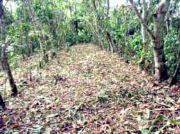 Figures : À droite l’allée d’Inga avant la taille, à gauche après la taille, le sol est recouvert par les rameaux et le feuillage.