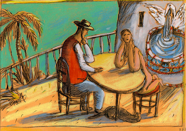 On attendait, on ne savait quoi et l’air était lourd… Dans ces moments là, Georges a des rêves de calamars, des millions de calamars attirés par les lamparos des pêcheurs. Des millions de calamars qui sont comme les neurones d’un gigantesque cerveau : Des tentacules qui se frôlent et se connectent, des photophores qui clignotent en…