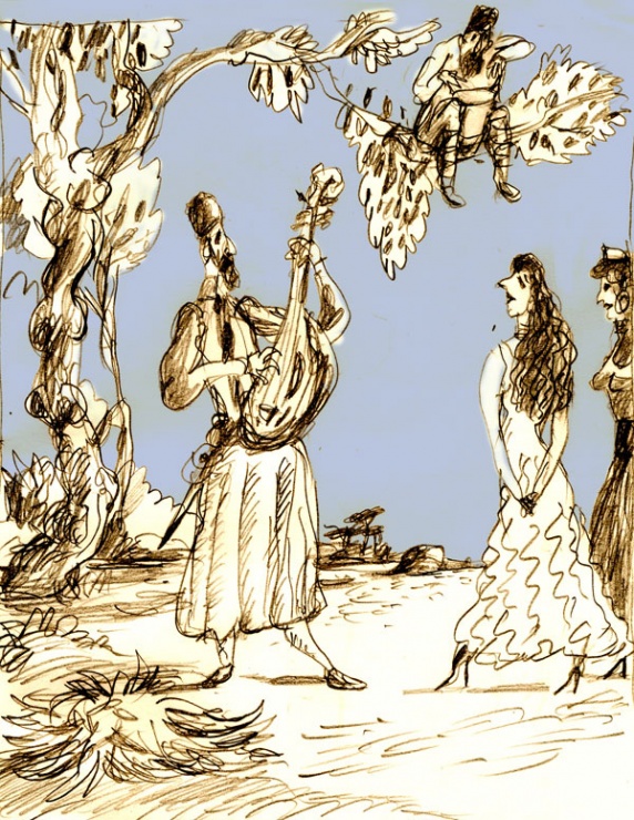 Rodolfo Alfonso Raffaelo Piero Filiberto Guglielni di Valentina d’Antoguola dit Rudolf Valentino, improvisa en 1915 , au oud et en costume régional, une chanson d’amour accompagné à la darbouka: