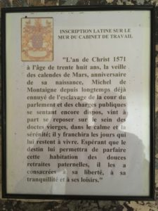 Il s’est retiré à trente neuf ans, pour se rencontrer lui-même, dans ces trois petites pièces rondes et superposées dans une tour rustique. Une sorte de pigeonnier. A distance du bavardage de ses femmes : sa mère, sa femme, ses filles dans leur château. En compagnie de ses maîtres grecs et latins. A distance de ses engagements civiques, et diplomatiques, de sa charge de maire de Bordeaux.