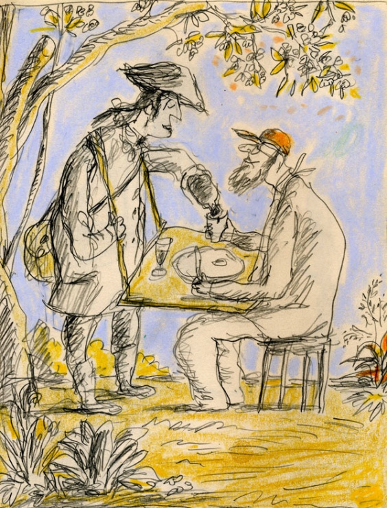 On fit la pause. On était bien au soleil. Jacques racontait ses amours, George ses rêves confus. L’air grésillait. Tout cela était écrit dans le Grand Livre, même le gros lézard qui haletait sous la touffe d’euphorbes réveil-matin (Euphorba helioscopia), même la cicindèle (Cicindela campestris) chère à Ernst Junger (Chasses subtiles)…