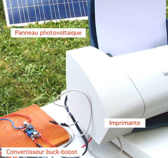 Un panneau photovoltaïque fournit seulement un courant continu. On pourrait brancher directement les appareils usant d’une alimentation secteur, même sans stockage: on débranche leur alimentation secteur que l’on n’utilisera pas, on intercale entre le panneau solaire et l’équipement, un petit convertisseur (Mot clé: Buck-Boost Converter) pour adapter la tension, avec un connecteur adéquat, et le tour est joué. Tant que le panneau est au soleil, cela fonctionne parfaitement….même pour un ordinateur portable et une imprimante, ainsi que je l’ai démontré plusieurs fois. Mais sans stockage, ces appareils s’éteignent dès que le soleil disparait ou qu’un nuage apparait.