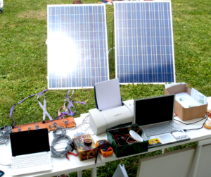 - pouvoir alimenter et/ou recharger ses systèmes de communication et d’information: téléphones portables, radios, chargeur de piles, box et téléphones de maison, éventuellement ordinateur portable.