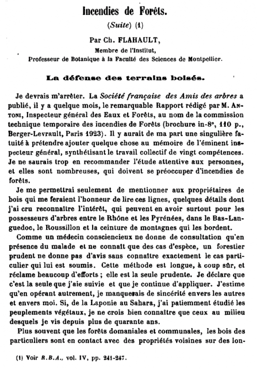 Le célèbre botaniste et naturaliste du début du XXème siècle, Charles Flahault [1] , passionné d’arbres comme nos trésors vivants Francis Hallé et Peter Wohlleben, avait étudié le phénomène et nous propose la façon d’y remédier, dans un texte de 1924. Une version de meilleure qualité avec possibilité de zoom sur le texte est ici, sur Persée: