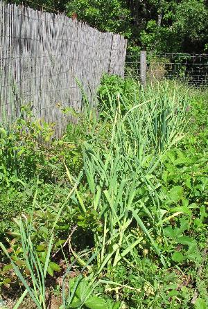 Pour ajouter une note personnelle, je n’ai jamais aussi bien compris l’adage permacole “a good garden should not be tidy” (un bon jardin doit être un fouillis “mal tenu” pour vous donner satisfaction). Le cliché vous montre le bout de terrain où j’ai récolté ce printemps plus de 7 kg d’excellentes gariguettes, qui me donnera l’ail pour quelques mois et qui me donne en ce moment des myrtilles (au fond quelques topinambours migrateurs venus de l’autre côté des canisses).