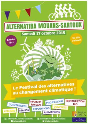 Le samedi 17 octobre 2015 s’est tenu, dans les Alpes Maritimes, un évènement Alternatiba (1) particulièrement réussi. Les Alpes Maritimes n’étaient pas sur le trajet du tour de France Alternatiba parti de Bayonne le 5 juin (2) pour se terminer à Paris les 26 et 27 septembre mais cela n’a pas empêché la tenue de plusieurs évènements sur le département (à Breil, à Villars sur Var…). Le plus important, celui qui devait se tenir à Nice, a eu lieu finalement à Mouans-Sartoux, du fait du manque de clairvoyance politique de la municipalité niçoise. Selon le site européen d’Alternatiba, près de 450 000 personnes ont participé à un village Alternatiba ou à une étape du tour. Le chiffre de 8000 personnes participantes à Mouans-Sartoux, selon les organisateurs, n’a pas besoin d’être modéré par une évaluation de la police : c’était plein, et pourtant la jeune équipe dynamique responsable de l’organisation avait vu grand comme on peut le voir sur le plan ci-après.