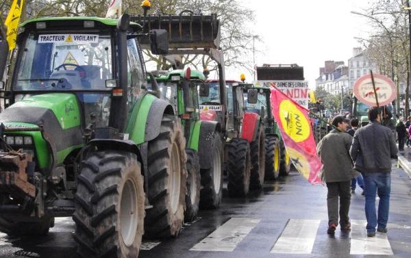 Cinq des 520 tracteurs ayant défilé à Nantes le 22 février.