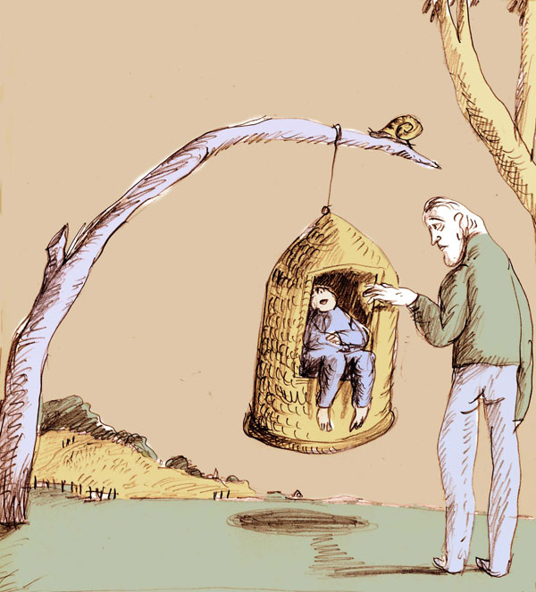 Au solstice d’hiver, les naturels du pays mettent leurs enfants dans des nids-corbeilles qu’ils ferment à la cire.